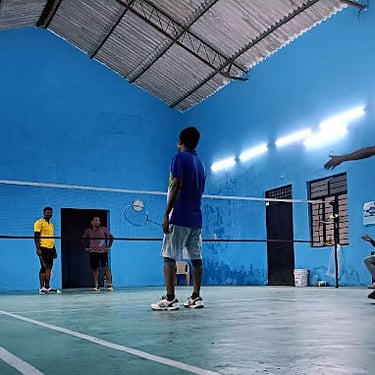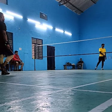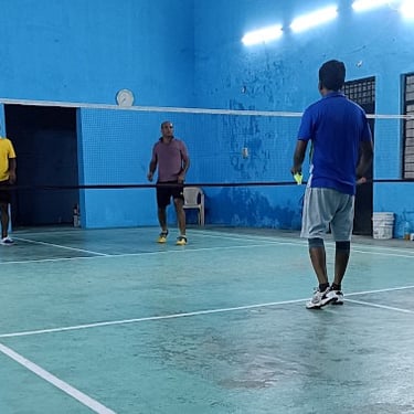 A multipurpose property featuring a badminton court, party hall, and comfortable rooms for your events and stays.